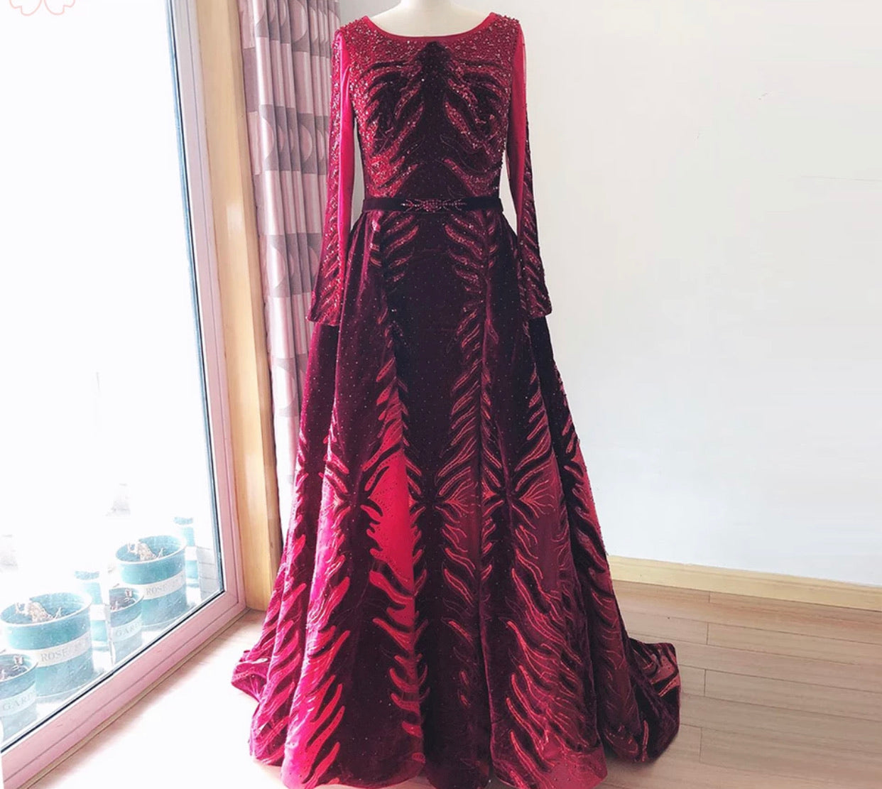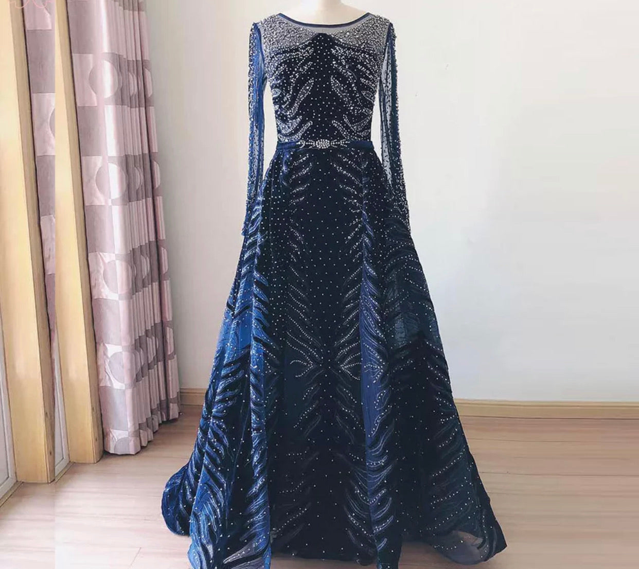 We do not stock up on large quantities due to delicate detailing on all our stunning dresses. All our evening and prom dresses require 15-30 business days to make.